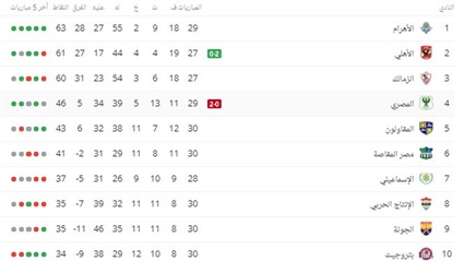 ترتيب الدورى المصرى بعد مباراة الاهلى اليوم