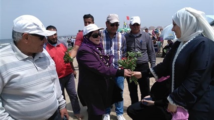 شم النسيم 2019.. استقبال المصطافين بالورود في مصيف جمصة (صور)