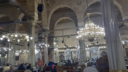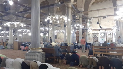 بدأت منذ قليل، بمسجد الإمام الحسين في حي الجمالية، شعائر صلاة التراويح في الليلة الثالثة عشر من شهر رمضان 2019، حيث اصطف العشرات من المصلين متفاوتي الأعمار في أجواء روحانية عالية.