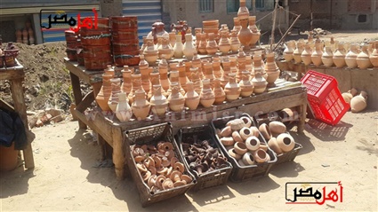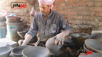 وعن المعاناة، أكد على أنه يقوم بجمع الطين ثم يتم تخميره لفترة كبيرة ويتم وضعه تحت درجة حرارة كبية وتشكيلة بيدة كفخار وأيضا أوانى كبيرة ويتم بيعه فى الأسواق الشعبية فقط مؤكدا أنه لا يتم الاقبال عليه من قبل الأهالى فى تلك الايام نظرا للأوانى الصينى الجديدة التى تعطى شكلا جماليا.