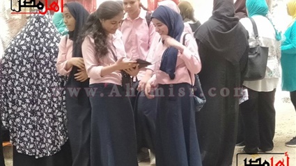عبر طلاب مدرسة حمزة بن عبدالمطلب الثانوية بنات بفيصل بعد الانتهاء من امتحان مادة الجغرافيا، عن فرحتهم بكلمة "الحمدلله الامتحان النهاردة كان كويس".