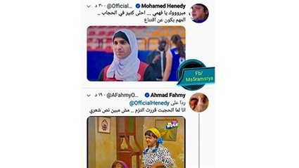 ليرد عليه أحمد فهمي بصورة لمحمد هنيدي وهو يقوم بدور سيدة مرتدية إيشارب، وأظهر جزءا من شعرها، وقال فهمي: "أنا لما اتحجبت قررت ألتزم.. مش مبين نص شعري". وعقب بقوله: "يعني ماباركتليش على المسلسل وبتباركلي على الحجاب"، ليفاجأ محمد هنيدي ويرد: "لا ثواني.. انت عامل مسلسل؟".
