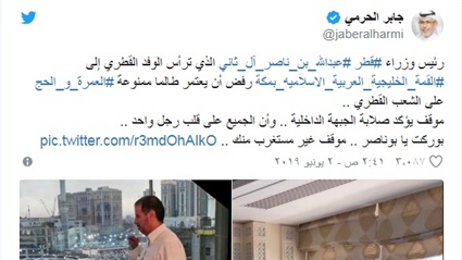 وحسب وكالة "عمون" الأردنية، فقد "رفض رئيس وزراء قطر، الذي ترأس وفد بلاده إلى القمم الخليجية العربية الإسلامية في مكة، أن يعتمر بدعوى أن الشعب ممنوع من الحج والعمرة".
