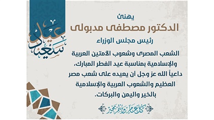 نشر المركز الإعلامى لرئاسة مجلس الوزراء إنفرجراف لتهنئة الدكتور مصطفى مدبولى رئيس مجلس الوزراء للشعب مصر العظيم وللأمتين العربية والإسلامية بحلول عيد الفطر المبارك.