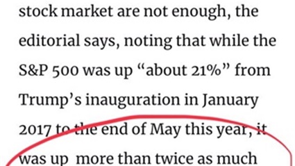 وقالت الصحيفة الأمريكية استكملاً لتحليها أن استطلاع جديد لشبكة CNN أظهر أن دونالد ترامب سيتعرض للهزيمة بسهولة بحال قرر خوض انتخابات الرئاسة في عام 2020 من قبل ثلاثة مرشحين محتملين من الحزب الديمقراطي هم جو بايدن، الذي سيتقدم عليه يتقدم بنسبة 57-40%، أو بيرني ساندرز بنسبة 55-42%، أو أوبرا وينفري بنسبة 51-42%.