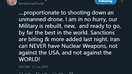 اقرأ أيضاً..ترامب: ألغينا العملية ضد إيران لأنها لم تكن مٌرضية.. وانتظروا الرد قريباً