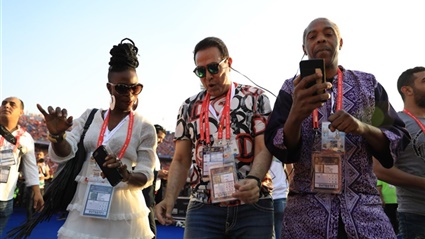 ونشر الاتحاد الأفريقي لكرة القدم "كاف"، صور على موقع التواصل الاجتماعي تويتر لحكيم والمطربين، يتراقصون على المسرح المتواجد في ستاد القاهرة، معلقًا عليها "هكذا هو شعورنا أيضًا، لا نطيق الانتظار".