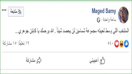 وكتب سامي عبر حسابه الشخصي على موقع التواصل الاجتماعي فيس بوك، "الله يرحمك يا كابتن جوهري...".