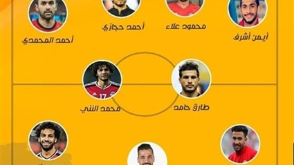 وجاء تشكيل الفراعنة كالآتي: محمد الشناوي في حراسة المرمى. أحمد حجازي، محمود علاء، أيمن أشرف، أحمد المحمدي في خط الدفاع. محمد النني، طارق حامد، عبد الله السعيد، محمود حسن تريزيجيه، محمد صلاح في منتصف الملعب. مروان محسن في خط الهجوم.