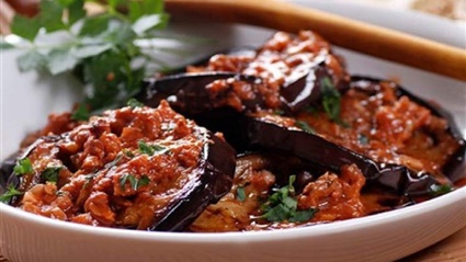 طريقة تحضير باذنجان مشوي باللحم المفروم والطماطم للرجيم