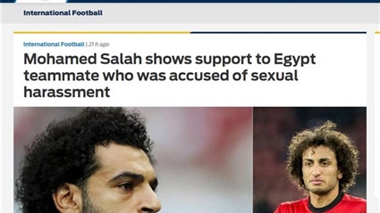 "lavanguardia" الإسبانية أكدت أن صلاح برر التحرش الجنسي لزميله، فيما نقلت "إندبندنت" البريطانية تصريحات صلاح التي قال فيها إن صلاح رفض أن يرمي بزمليه إلى المقصلة.