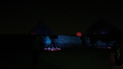 بدأ منذ قليل عرض الصوت والضوء باللغة العربية مجاناً، بأهرامات الجيزة، لإحياء الذكرى السادسة لثورة 30 يونيو، وهناك إقبال كثيف من المصريين والأجانب، رجال ونساء وأطفال.