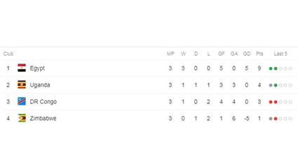 ترتيب المجموعة الاولى بعد فوز مصر على اوغندا