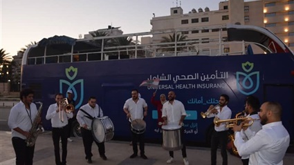 وتواجدت مع الشباب فرقة موسيقية تقوم بالعزف من خلال المزمار والطبلة لجذب المواطنين، ثم يقوم الشباب بعدها عند تجمع المواطنين بشرح لمنظومة التأمين الصحي الشامل الجديدة.