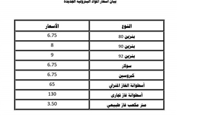 وقال محافظ الدقهلية، إن سعر لتر بنزين 92 هو 8 جنيهات،وبنزين 95 هو 9 جنيهات ، وسعر لتر السولار والكيروسين 6.75 وسعر المتر المكعب من الغاز الطبيعي المنزلي 3.5 جنيه.