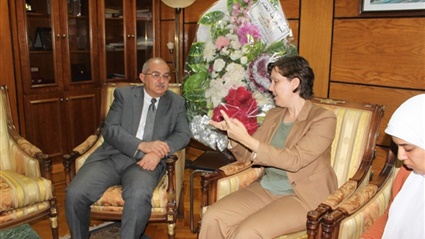 جاء ذلك خلال استقباله للسيدة كونسى ديرمودى مديرة مشروع المنح المقدمة للجامعات المصرية بهيئة الايمدايست والأستاذة هبه شعلان مسئولة التوظيف وشؤون الخريجين ومنح الجامعات الحكومية فى الهيئة وذلك بحضور الأستاذ رمضان توفيق مدير عام شئون التعليم بالجامعة.