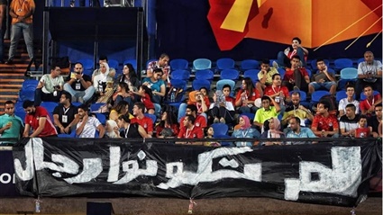 ورفع الجمهور المصري لافتة في ستاد القاهرة للاعبي المنتخب "لم تكونوا رجال".