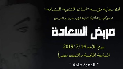 يستعد المخرج ناصر الداية مؤسس فرقة أنتيكا، لتقديم العرض المسرحي مريض السعادة تحت رعاية مجموعة "إنسان"، يوم الأحد القادم في مدينة السادس بقاعة سيلا، من أكتوبر، في تمام الساعة الخامسة والنصف.