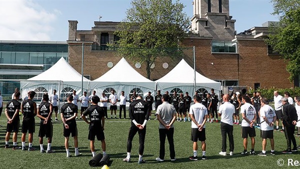ووقف لاعبي ريال مدريد دقيقة حداد قبل بدء مران اليوم.
