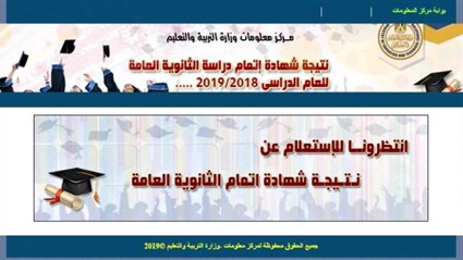 ومن المقرر غداً الأحد عقد مؤتمر صحفي يترأسة الدكتور طارق شوقي وزير التربية والتعليم، بحضور خالد عبد الحكم مدير الإدارة العامة لامتحانات الثانوية العامة ورئيس امتحانات الثانوية العامة، لإعلان نسبة نجاح وأسماء أوائل الثانوية العامة 2019، خالد عبد الحكم نائب رئيس امتحانات الثانوية العامة ومدير الإدارة العامة لامتحانات الثانوية العامة، أن نسبة النجاح هذا العام تبلغ 78.6% وتعد أعلى من نسبة نجاح العام الماضي التي بلغت 74.3%، وفيما يلي طريقة الحصول على نتيجة الثانوية العامة 2019 من خلال موقع وزارة التربية والتعليم