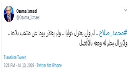 ومن جانبه، كان الاتحاد المصري لكرة القدم علق على الأنباء عقب خروجها منذ أيام قليلة، بعدما قال المتحدث الرسمي أسامة إسماعيل: "صلاح لم يعتذر يومًا عن منتخب بلاده، ولا يزال يحلم له ومعه بالأفضل".