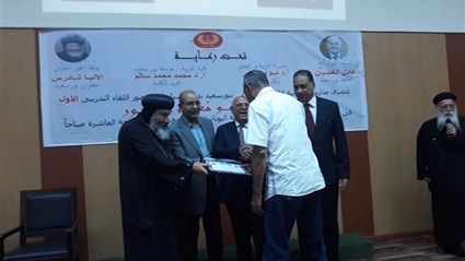 وفي ختام التدريب سلم اللواء عادل الغضبان محافظ بورسعيد دروع تكريم المحافظة للأنبا تادرس مطران بورسعيد، وللدكتور محمد سالم عميد كلية التربية جامعة بورسعيد، كما سلم الأنبا تادرس أيضا درع التكريم باسم المطرانية لمحافظ بورسعيد تكريما له.