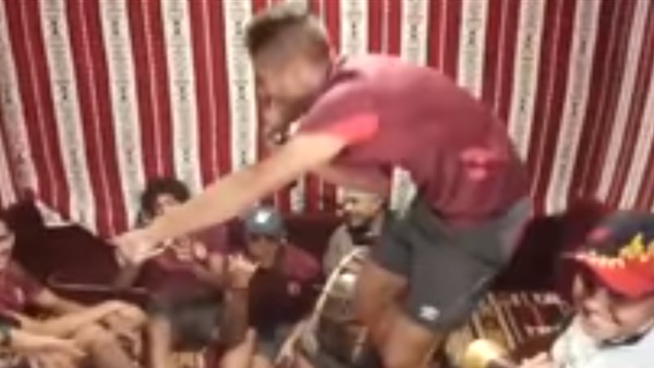 شهدت احتفالات لاعبي النادي الأهلي، دخول رمضان صبحي جناح الفريق، وباسم علي الظهير الأيمن، في وصلة غناء ورقص على أنغام المزمار البلدي.
