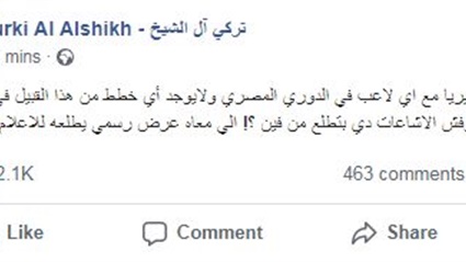وقال آل الشيخ عبر حسابه الرسمي على فيسبوك: "لم يتفاوض ألميريا مع أي لاعب في الدوري المصري ولايوجد أي خطط من هذا القبيل في الموسم الحالي".