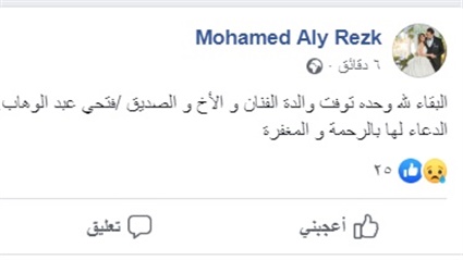 وكتب محمد علي رزق عبر حسابه الشخصي بموقع التواصل الاجتماعي "فيسبوك"، البقاء لله وحده توفيت والدة الفنان و الأخ و الصديق / فتحي عبد الوهاب... نسألكم قراءة الفاتحة والدعاء لها بالرحمة و المغفرة".