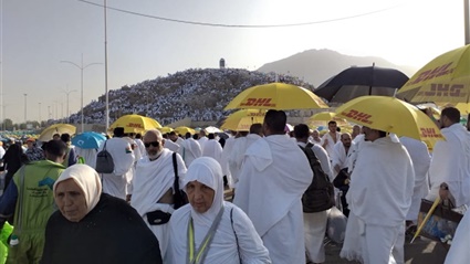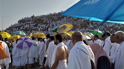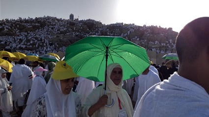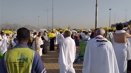في وقفة عرفات .. ووسط ارتفاع الأصوات بالدعاء والتلبية "لبيك اللهم لبيك.. لبيك لا شريك لك لبيك.. إن الحمد والنعمة لك والملك.. لا شريك لك" تدفق ضيوف الرحمن من حجيج الجمعيات الأهلية، صباح اليوم، إلى صعيد جبل عرفات والذى يبعد 12 كيلومترًا من مكة؛ ليشهدوا وقفة عرفات الكبرى ويقضوا الركن الأعظم من أركان الحج، وسط استعدادات أمنية وخدمية عالية من الجانب السعودى؛ لينطقوا مع مغيب الشمس إلى مزدلفة ومنها لمنى.