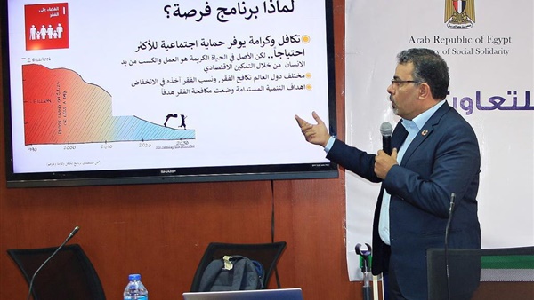 وقال "عاطف"، أن برنامج "فرصة" هو أحد برامج التمكين الإقتصادي المساندة لشبكة الحماية الإجتماعية المقدمة من الوزارة من خلال برنامج تكافل وكرامة والضمان الاجتماعي، مؤكداً أن برنامج "فرصة" القادرين علي العمل من المستفيدين من هذه الشبكة الحمائية.
