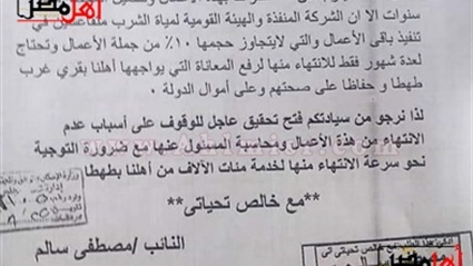 وكان مصطفى سالم وكيل لجنة الخطة والموازنة نائب طهطا بسوهاج قد عقد لقاء مطولا مع وزير الإسكان والمرافق والمجتمعات العمرانية لعرض ومناقشة مشاكل المياه بقرى ونجوع طهطا والتعرف على أسباب التأخير في إنهاء عدة مشروعات ولعل أهمها عدم اكتمال خطوط وشبكات مياه محطة شطورة والتي من المفترض أن تخدم مدينة طهطا وقراها ونجوعها وإيجاد الحلول الجذرية لاستكمال المشروع بشكل سريع وعاجل للقضاء على مشاكل المياه بقرى طهطا.
