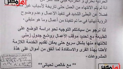 وتناول اللقاء مناقشة التأخير الشديد في الانتهاء من تنفيذ مشروعات الصرف الصحي بقرى نزلة القاضي والجبيرات والقبيصات والحردية بحري والحردية قبلي والتي بدأ العمل بها من حوالي ١٠ سنوات ولم ينته حتى الآن بسبب التوقفات المستمرة في التنفيذ.