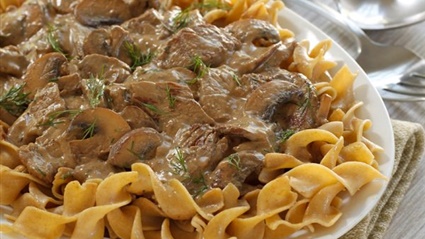 - نقوم بإضافة الكريمة اللبانى، ويُقلب الخليط، ثم تُغطى المقلاة، وتُترك على نار هادئة حتى يصبح الخليط سميك القوام، وينضج اللحم تماماً.