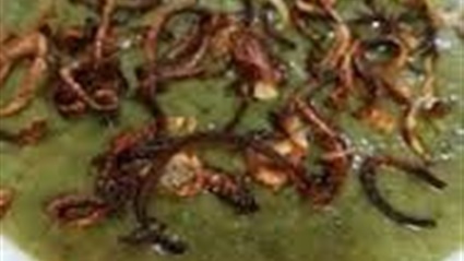 5_ توضع البصارة في طبق التقديم ويزين الوجه بالبصل المحمر.