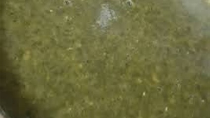 2. بعدها نضيف الملوخية ونحرك المكونات ثم نهرس المزيج.