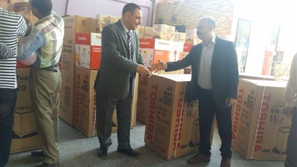 وزعت مديرية التضامن بقنا، اليوم الأحد، أجهزة كهربائية على 17 فتاة مقبلة على الزواج بنادي الزراعيين بنجع حمادي.