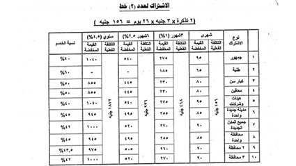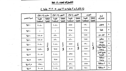 - النصف سنوي بـ540 جنيهًا للجمهور والمعاقين وكبار السن بـ 445 جنيهًا وغير متوفر للطلبة.