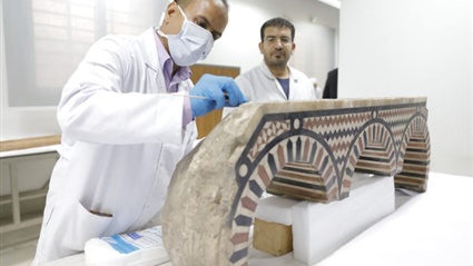 وبعد فك التغليف تم نقل المومياء الخاصة بسنچم إلى معمل الترميم لوضعها في كبسولة التعقيم.