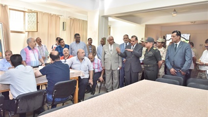 وبدأ المحافظ وقائد المنطقة الجنوبية العسكرية جولتهما بتفقد اجنحة مدرسة ناصر الثانوية وبعض الفصول الدراسية واستمعا الى شرح بعض المدرسين وقياس مدى تحصيل الطلاب ثم تفقد حجرات الوسائل التعليمية والانشطة المدرسية ودورات المياه مشدداً على الاهتمام بالعملية التعليمية والانشطة المدرسية وصقل خبرات ومواهب الطلاب والمتابعة المستمرة ثم تفقد مكتبة المدرسة والتى تذخر بمئات الكتب والدوريات العلمية فى مختلف التخصصات والخرائط المتنوعة ثم تفقد حجرة الطبيب والمقر المركزى للموهوبين والتعليم الذكى بالمدرسة ثم معمل الحاسب الالى ثم تفقد ميدان الرماية بالمدرسة واستمع الى شرح من العقيد محمود صبحى عن البرنامج التدريبى لتدريس مادة التربية العسكرية لطلبة المدارس كما تفقد المحافظ ومرافقوه متحف المدرسة وما يحويه من كتب ومقتنيات المدرسة على مر السنين ومعدات ذات قيمة تاريخية كبيرة .