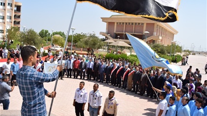 شهد صباح اليوم الدكتور أحمد عزيز رئيس جامعة سوهاج انطلاق فعاليات احتفالية بدء العام الدراسي الجديد ٢٠١٩ /٢٠٢٠، لاستقبال ٥٨ ألف طالب وطالبة داخل ١٦ كلية بمقري الجامعة القديم والجديد، حيث أدى رئيس الجامعة تحية العلم مع أبنائه الطلاب الجدد والقدامى وسط أجواء يملؤها الأمل والتفاؤل، يصاحبه الدكتور صفا محمود السيد نائب رئيس الجامعة لشئون التعليم والطلاب، الدكتور أحمد سليمان نائب رئيس الجامعة لشئون الدراسات العليا والبحوث، الدكتور مصطفى عبد الخالق نائب رئيس الجامعة لشئون البيئة وخدمة المجتمع، وأيضاً عمداء الكليات وعدد من أعضاء هيئة التدريس، وممثلي الاتحادات الطلابية بالجامعة.