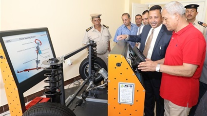 واستمع محافظ المنوفية إلي شرح مفصل عن بعض النظم التعليمية بالجامعة وكيفية تشغيل لوحة المحطة البحثية الخاصة بإدارة المصنع الذكي ، دائرة كهربائية خاصة بالسيارات والجرار الزراعي ، نموذج تعليمي لمحرك بنزين.
