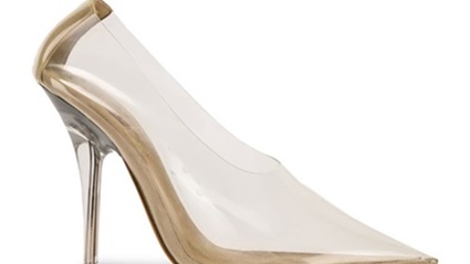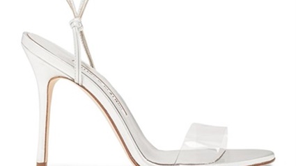 حذاء من تصميم مانولو بلايك، شفاف اللون حيث أن الأحذية الشفافة رائجة منذ عدة سنوات ويمكن الظهور به فى إطلالات مختلفة مع كافة الألوان.