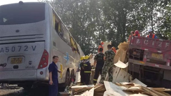 ووقع الحادث فى حوالى الساعة السابعة من صباح يوم السبت عندما اصطدمت حافلة تقل 69 شخصا بشاحنة تقل ثلاثة أشخاص على طريق شانغهاى - نانجينغ السريع، وفق ما ذكره فريق الانقاذ.