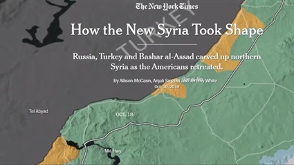 ذكرت صحيفة «نيويورك تايمز» الأمريكية في تقرير لها بعنوان "كيف اتخذت سوريا الجديدة شكلها"، كيف تسلسلت الأحداث في سوريا منذ انسحاب القوات الأمريكية منها وحتى وصلت إلى شكل جديد يغلب عليه التمكّن التركي من ناحية الشمال، وكيف شقت إيران طريقا ممتدا يصل بها لحليفها اللبناني «حزب الله».