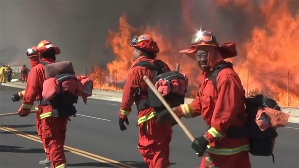 وقال مسؤولو الإطفاء إن الحريق انتشر بشكل مرعب بمسافة مائة فدان شرقي لوس انجلوس، مما أجبر السلطات على إخلاء متنزهين بهما منازل متنقلة.