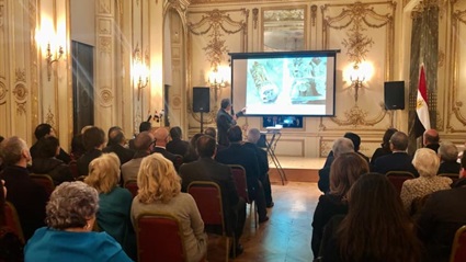 ألقى الدكتور خالد العناني وزير الآثار محاضرة بالمركز الثقافي المصري بلندن حول الاكتشافات و المشروعات الأثرية الجديدة والمتاحف في مصر، وذلك بحضور السفير المصرى فى لندن طارق عادل، وحوالي ١٦٠ شخص من السفراء المعتمدين وعلماء المصريات وممثلي العديد من شركات السياحة والسفر والأكاديميين والطلبة من بينهم سفير الجامعة العربية إبراهيم محي الدين وياسر حسن المدير التنفيذي للبنك الاهلي في لندن والمدير الإقليمي لشركة مصر للطيران بالاضافة الي العديد من البريطانيين المهتمين بالتاريخ والآثار المصرية.
