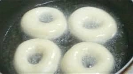 4- سخنى الزيت في قدر، أقلي الدونات حتى تنتفخ وتتحمر من كلا الجانبين.