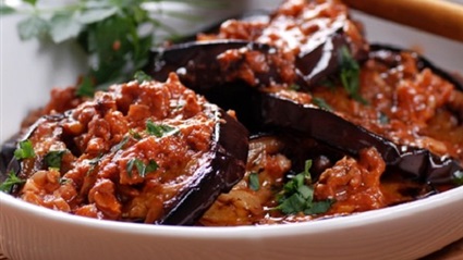 - إضافة البهارات وانتظرى حتى تنضج تمامًا، وقبل النضج عليكى وضع شرائح الباذنجان والفلفل وأصابعى البطاطس فى الصينية بشكل منظم، واتركيها على النار لمدة 4 دقائق.