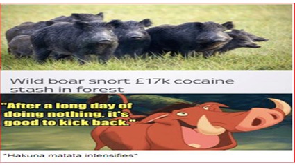 وبعد تلك الواقعة، انتشرت إحدى ميمات الإنترنت، على طريقة فيلم "الأسد الملك"، وعبارته الشهيرة "هاكونا متاتا"، وهي عبارة سواحلية ترجمتها"لاتخف أو لاتقلق"، ويقصد به أنه بما أن الخنازير البريّة هنا فلاداعِ للقلق.